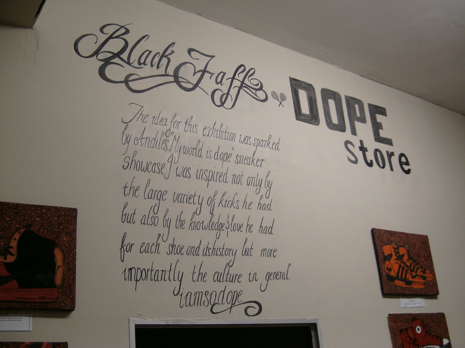 Opening day of the much talked about Black Faff x DOPEstore "iamsodope"art event @the sneaker lounge(DOPEstore) lived up to the hype. Art lovers and sneaker heads came out to show their love,the work put in by both brands turned out pretty dope!We all had a good time discussin sneakers and art and how we all have love for this lifestyle.Fashionista's from JoHo